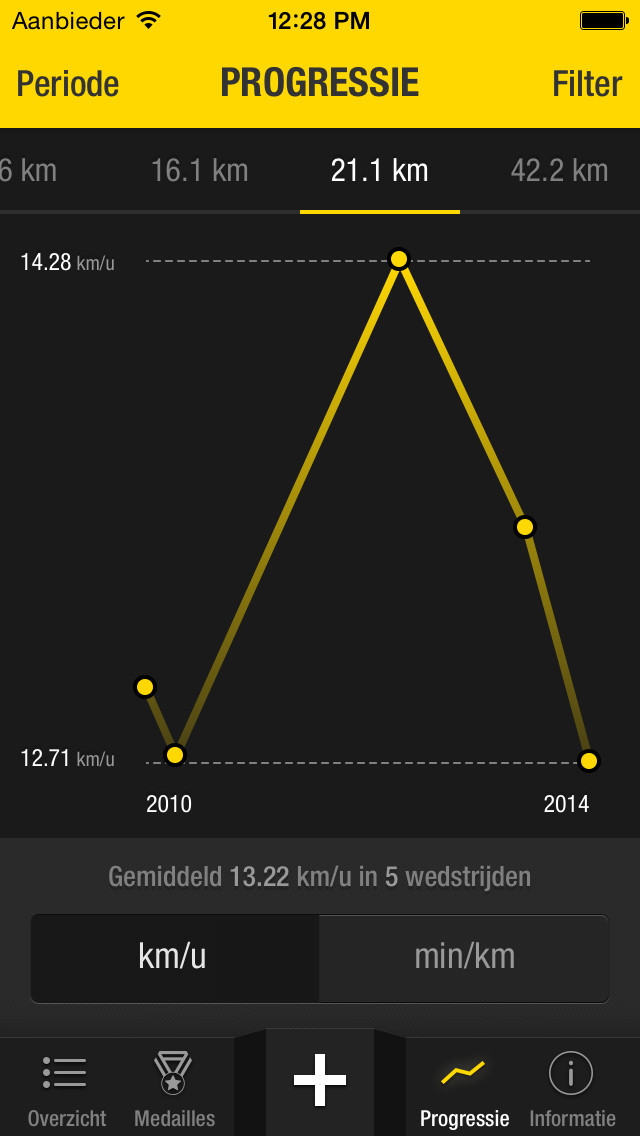 Hou gemakkelijk je resultaten bij voor zowel hardlopen, zwemmen, schaatsen en fietsen.
